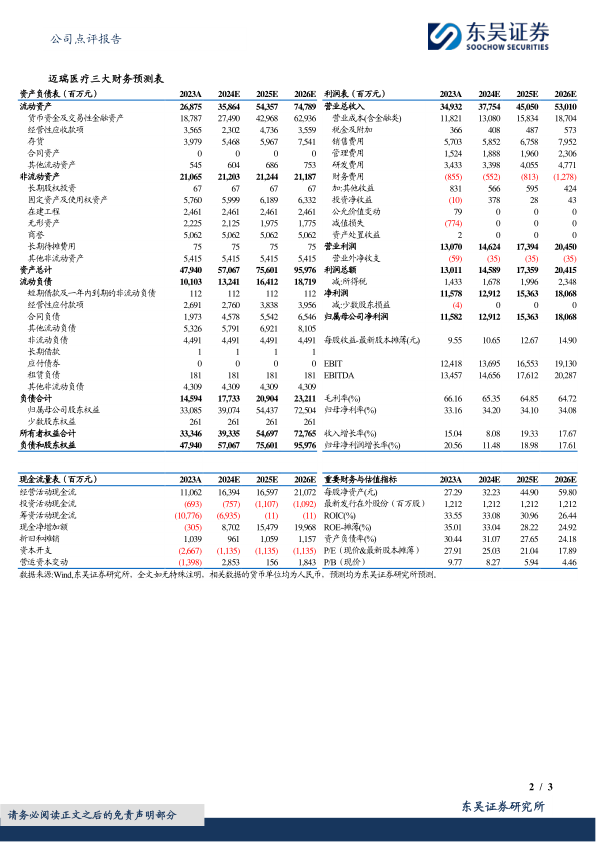 本报告对迈瑞医疗2024年三季报进行了全面分析,指出公司业绩短期承压,但海外市场和体外诊断业务表现亮眼。虽然下调了盈利预测,但考虑到未来招采恢复的潜力,维持“买入”评级。报告还详细分析了公司的财务状况和关键财务指标,为投资者提供了有价值的参考信息。