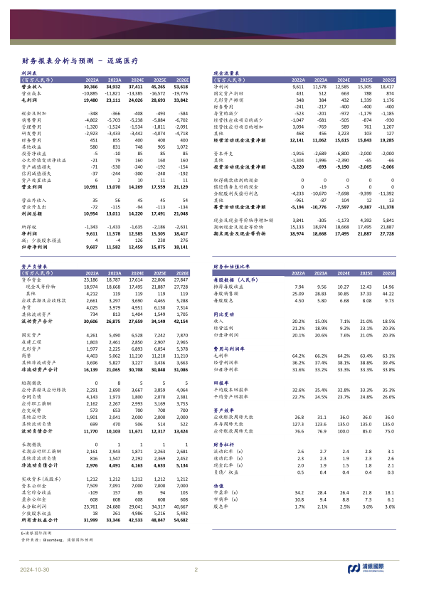 本报告对迈瑞医疗(300760.CH)进行了研究分析,核心观点如下: