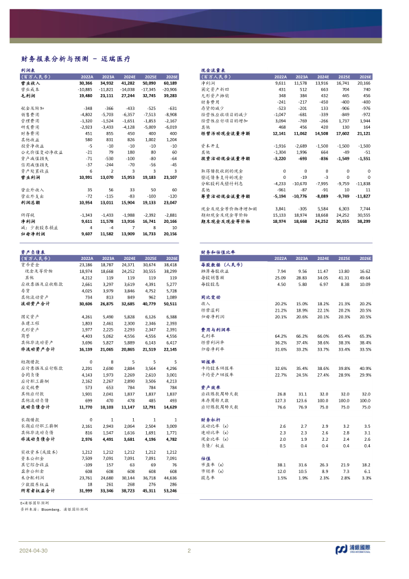 本报告对迈瑞医疗(300760.CH)进行了研究分析,核心观点如下: