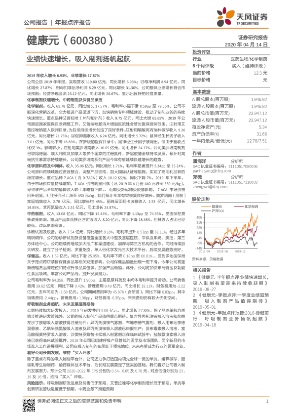 本报告对健康元(600380)2019年年报进行了深度分析,并维持“买入”评级。