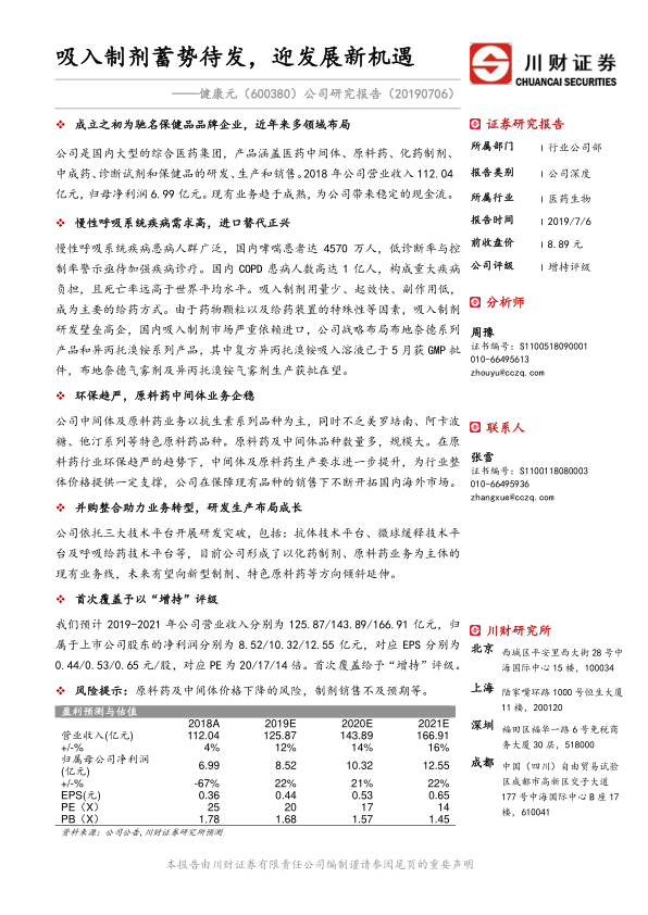 公司研究报告:吸入制剂蓄势待发,迎发展新机遇