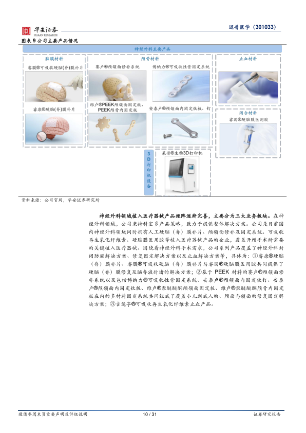 公司是国内神经外科领域同时拥有人工硬脑(脊)膜补片、颅颌面修补及固定系统、可吸收再生氧化纤维素、硬脑膜医用胶等植入医疗器械产品的企业,覆盖主流神外手术所需的多种核心植入医疗器械品种。公司业务处于快速成长阶段,2020-2023年营收CAGR高达23%。截至2023年底,公司产品进入国内超1600家医院,国际市场覆盖欧洲、南美、亚洲、非洲等近90个国家和地区。