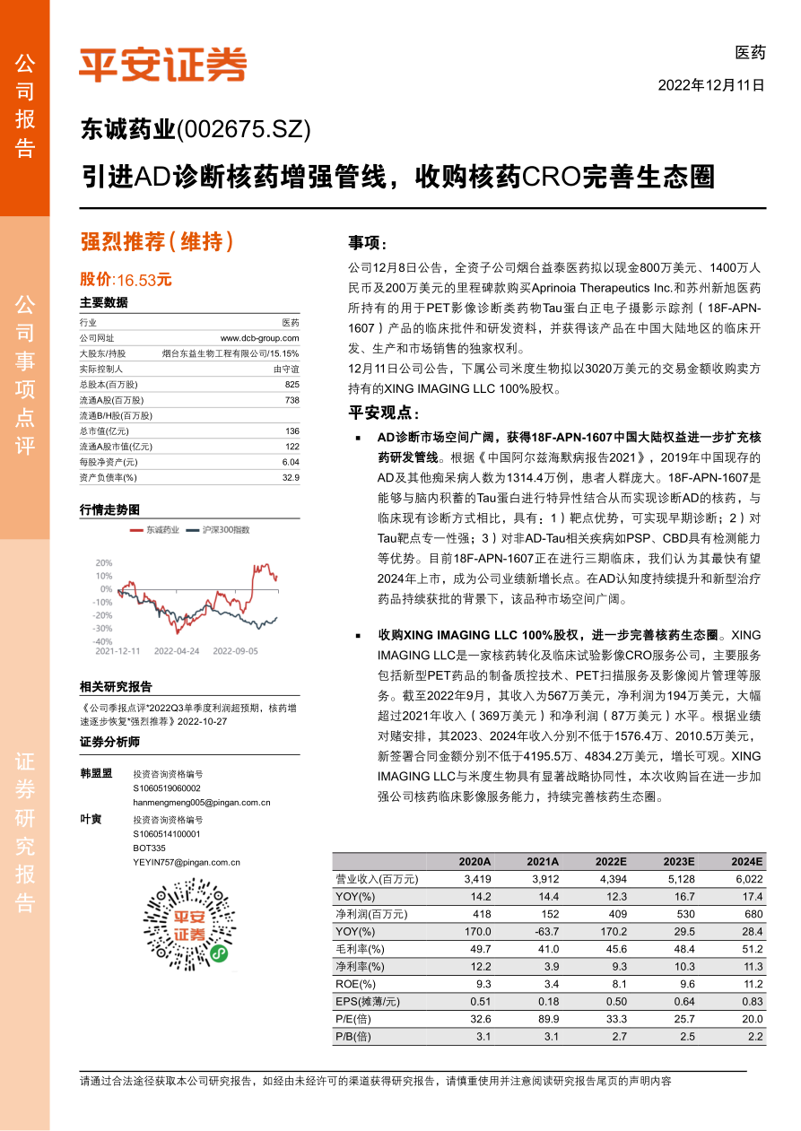 引进AD诊断核药增强管线,收购核药CRO完善生态圈