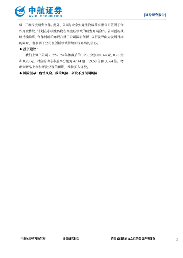 风险提示:疫情风险、政策风险、研发不及预期风险