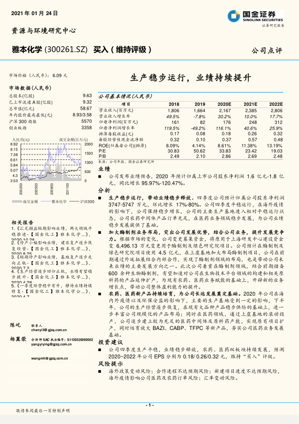 雅本化学在2020年展现出强劲的业绩增长势头,主要得益于生产的稳步运行和农药、医药两大核心业务的协同发展。公司通过战略性地加大对酶制剂业务的投入,旨在构建生物技术平台,为未来增长注入新动力。尽管面临多重外部风险,但公司在产品创新和产能扩张方面的努力,有望持续提升其市场竞争力和盈利能力。国金证券维持“买入”评级,反映了对公司未来发展的积极预期。