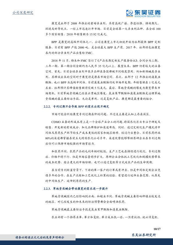 预计公司2020-2022年营业收入分别为23.39亿元、30.73亿元和37.49亿元,归母净利润分别为2.31亿元、3.10亿元和4.08亿元。对应EPS分别为0.24元、0.32元和0.42元。当前股价对应PE分别为33X、24X和19X。考虑到公司农药业务的全球竞争力以及医药业务的加速协同发展,首次覆盖给予“买入”评级。