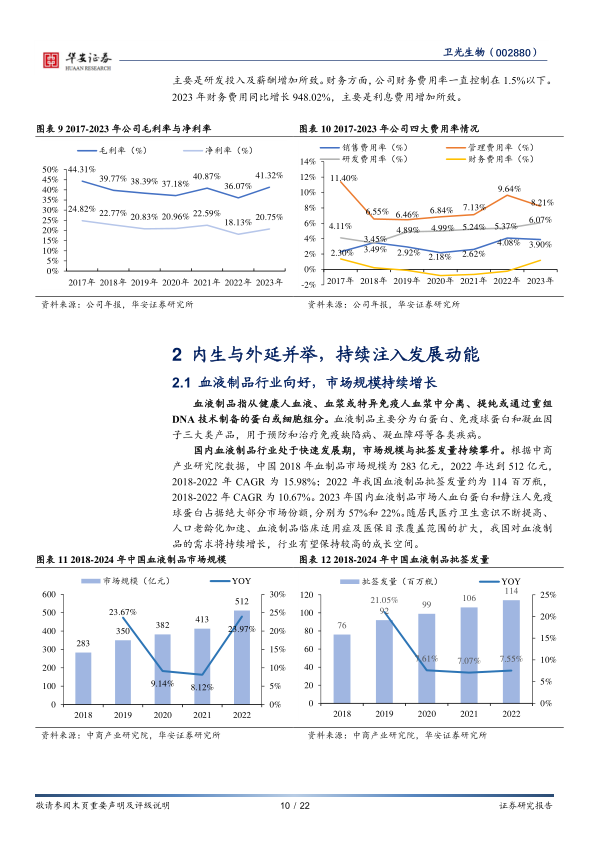 通过内生(采浆量提升、产品研发创新)与外延(浆站收购、拓展新业务)并举的发展策略,卫光生物持续注入发展动能,其市场前景广阔。报告基于对公司未来营收和净利润的积极预测,首次覆盖并给予“买入”投资评级,凸显了市场对其未来发展潜力和投资价值的认可。