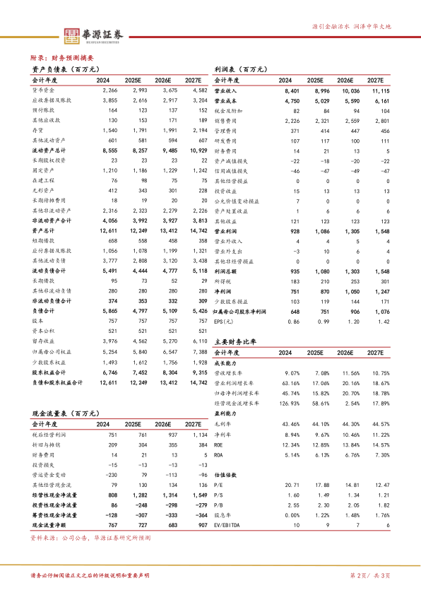 盈利预测与评级:我们预计公司2025-2027年的归母净利润为7.51亿元、9.06亿