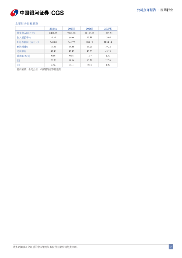 内生与外延双开花,研发与渠道结硕果。2024年华润圣火并购如期完成。昆中药“大单品+全渠道+品牌化”战略持续推进,昆中药1381整体销售规模实现历史性突破。借助三九商道的基础,公司完成全国范围内的零售、医疗体系昆药销售渠道整合建设,实现从多级渠道到聚焦重点主流客户重点管控,2025年口服产品有望实现持续放量。研发层面,2024年公司两个产品首家过评,另有多个药品推进研发。2024年研发投入1.4亿元,研发费用1.1亿元,研发费用率1.3%,自研的氯硝西泮注射液、秋水仙碱片(版纳药业)均首家过评,丰富神经精神、肌肉骨骼产品管线。用于非酒精性脂肪肝的1类创新药KPC000154和2.2类改良型新药KYAH02-2020-149获批临床。另有多个3类仿制药有序推进。