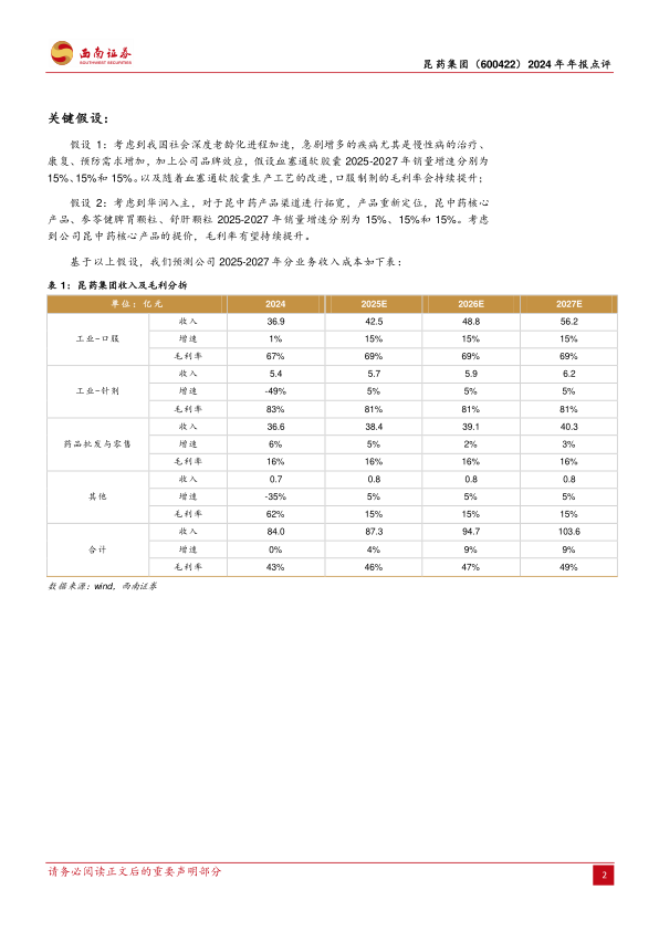本报告对昆药集团2024年年报进行了深入分析,核心观点如下: