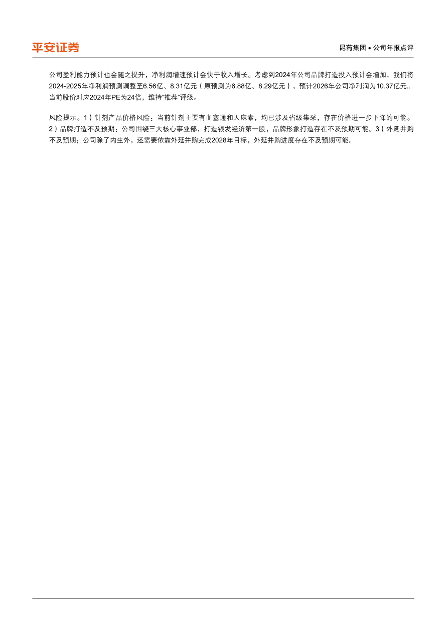 风险提示。1)针剂产品价格风险:当前针剂主要有血塞通和天麻素,均已涉及省级集采,存在价格进一步下降的可能。