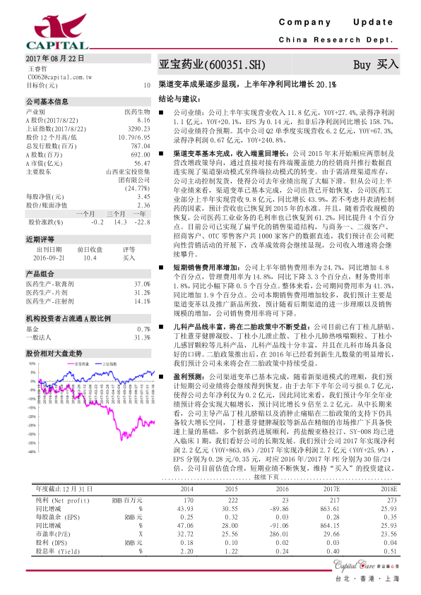 亚宝药业通过成功的渠道变革,实现了业绩的显著增长。公司丰富的儿科产品线使其能够充分受益于二胎政策。尽管短期内销售费用率有所增加,但随着渠道的进一步理顺和销售规模的扩大,预计销售费用率将有所下降。公司未来的增长动力来自于现有产品的市场扩张和创新药的研发进展。