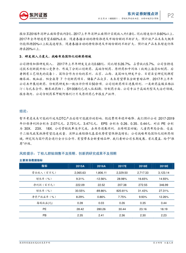 亚宝药业通过营销改革实现了业绩回暖,并在儿童药和创新药领域积极布局,具有良好的发展前景。东兴证券首次覆盖并给予“推荐”评级,但同时也提示了相关风险。
