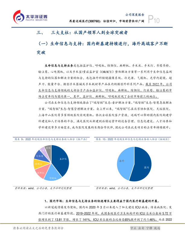新冠疫情得到控制后,中国及全球医疗市场都亟待寻求新的增长点。作为中国医疗器械企业的领军者,迈瑞医疗在国内竞争中表现出引领国产、赶超外资的趋势,在海外竞争中不断实现高端客户的突破。