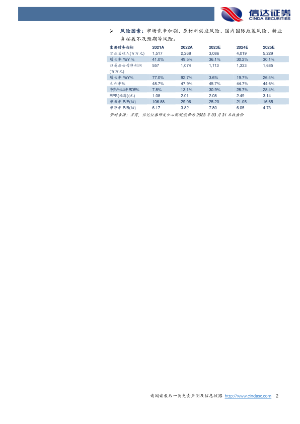 风险因素:市场竞争加剧、原材料供应风险、国内国际政策风险、新业务拓展不及预期等风险。
