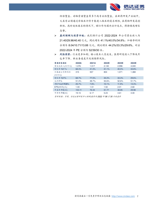 风险因素:行业竞争加剧、核心技术人员流失、医药研发投入下降或外包率下降、新业务进度不及预期等风险。