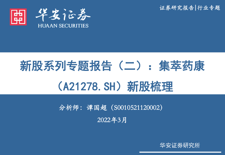 本报告对集萃药康(A21278.SH)进行了新股梳理和分析,旨在评估其投资价值。