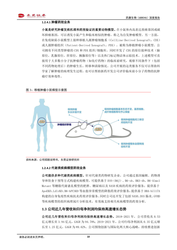 公司业务以商品化小鼠模型销售为核心,并涵盖模型定制、定制繁育和功能药效分析等多项服务。