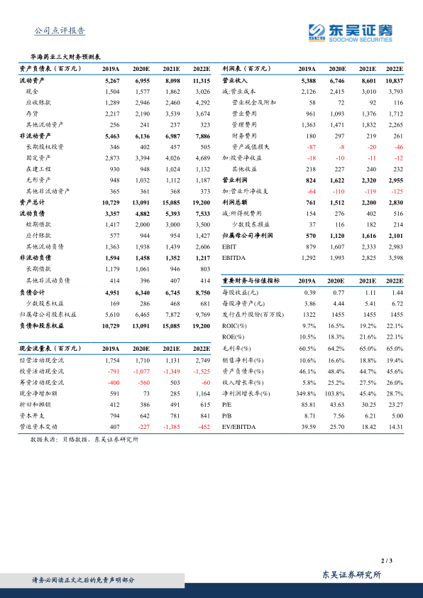 华海药业2020年前三季度业绩符合预期,全年有望实现高增长。公司通过制剂产品覆盖率的提升和原料药业务的恢复,实现了业绩的显著增长。同时,公司持续加大研发投入,特别是在生物药领域的布局,为未来的成长打开了空间。