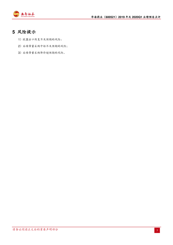 本报告分析了华海药业的经营现状和未来发展前景。公司作为特色原料药龙头,正积极向制剂转型,并通过全球化战略、带量采购和生物药/新药研发等多重驱动因素,有望实现业绩的持续增长。报告认为,缬沙坦事件的影响正在逐步消除,海外业务有望提速,带量采购将促进国内制剂放量,而生物药和新药的研发将为公司打开中长期增长空间。基于此,报告首次覆盖华海药业,给予“持有”评级,并提示了相关风险。