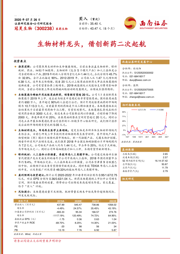 1 冠昊生物:聚焦再生医学与生命健康,药械协同发展