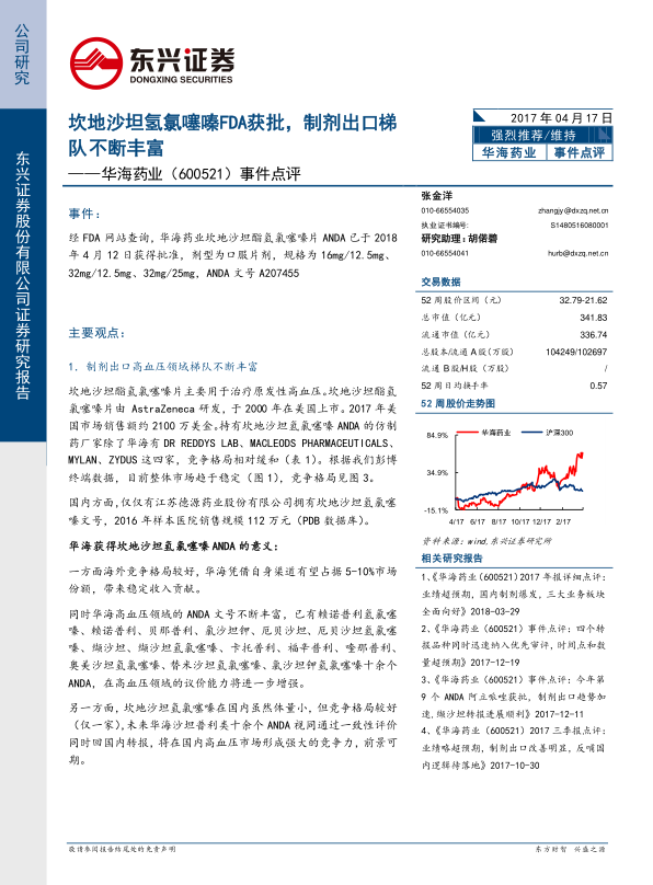 报告不仅关注华海药业在海外市场的进展,也分析了其在国内市场的潜力,认为公司未来有望凭借一致性评价的优势,在国内高血压市场形成强大的竞争力。