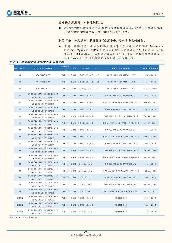 坎地沙坦酯氢氯噻嗪片美国获批,国内有望转报免BE
