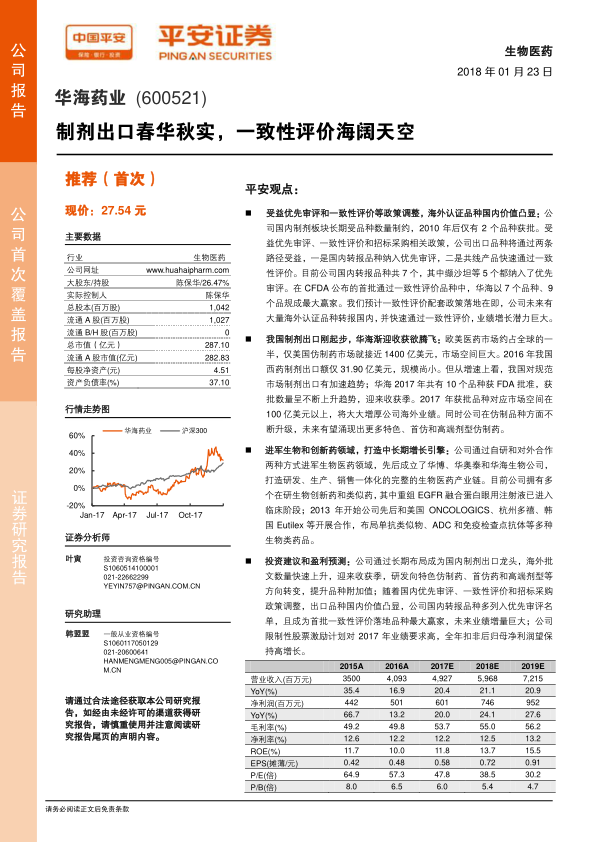 - 国内政策调整使出口品种的国内价值凸显,公司国内转报品种多列入优先审评名单,并成为首批一致性评价落地品种的最大赢家,未来业绩增量巨大。