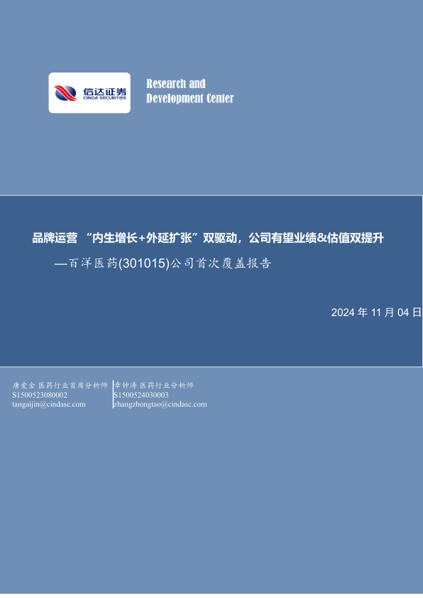 百洋医药的核心逻辑在于其强大的品牌运营能力,该业务在2018-2023年间实现了约21%的收入CAGR,并占据公司总收入的58%(2023年)。公司通过品规扩张、渠道拓展(线上及院内市场)以及新品引入,持续推动存量产品的增长。外延扩张方面,收购百洋制药不仅带来了扶正化瘀等多个处方药品种,还通过业绩承诺机制保障了未来增长。公司致力于构建“品牌高速公路”,覆盖OTC、OTX、重症药及高端医疗器械,以满足多样化的健康需求。