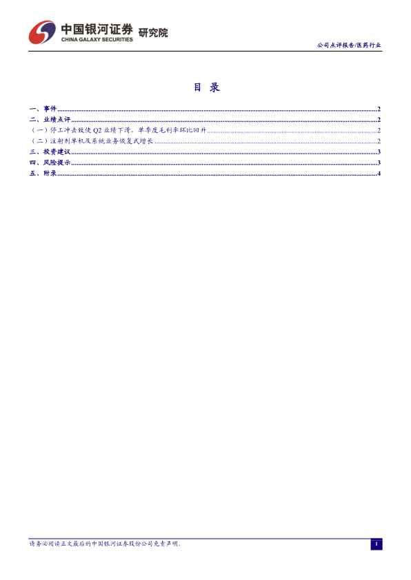 单季度毛利率改善,上游成本压力或缓解。公司今年上半年利润增速低于收入增速,主要是由于同比毛利率下滑,财务费用率和研发费用率均有所上升。不过,公司Q2单季毛利率已回升至44.15%,环比Q1提升3.87pp。随着中国PPI继续下滑,公司上游原材料成本压力或持续缓解。