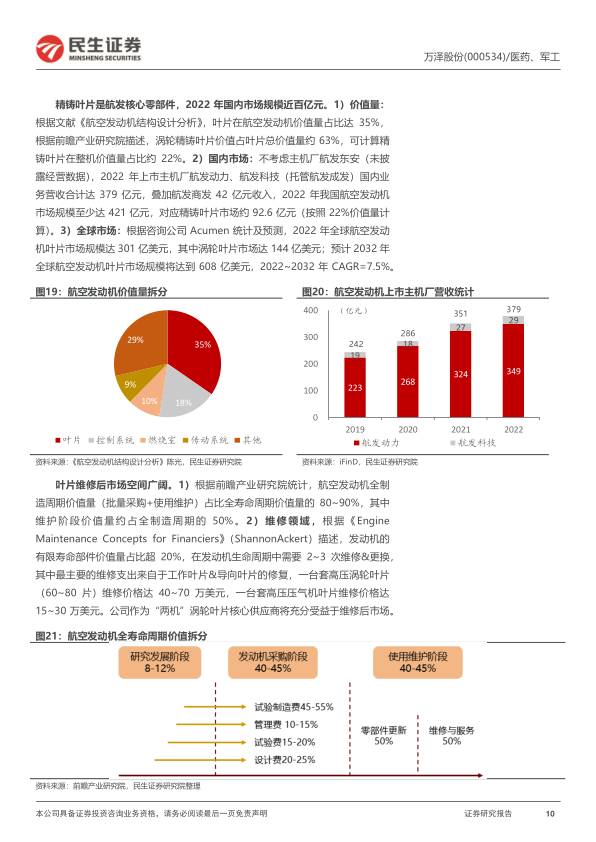 历久弥新不断优化业务;新材料十年磨一剑进入业绩兑现期。1)医药领域,2019年公司重组置入医药资产,置出房地产业务实现转型。旗下内蒙双奇是国内专注于消化和妇科微生态系统的龙头企业,产品在细分领域具有较高市场知名度和占有率。2019~2022年医药业务保证公司具有较好的现金流;2)新材料领域,2013年公司与中南大学战略合作进入高温合金及其制品赛道,此后引入多名行业前沿专家并坚持十年研发投入,形成以中南研究院为研发中心、以深汕万泽和上海万泽为主要生产基地的产研一体化格局,现成长为“两机”热端零部件核心供应商,跟研型号批产将推动新材料业务迈入收获期。