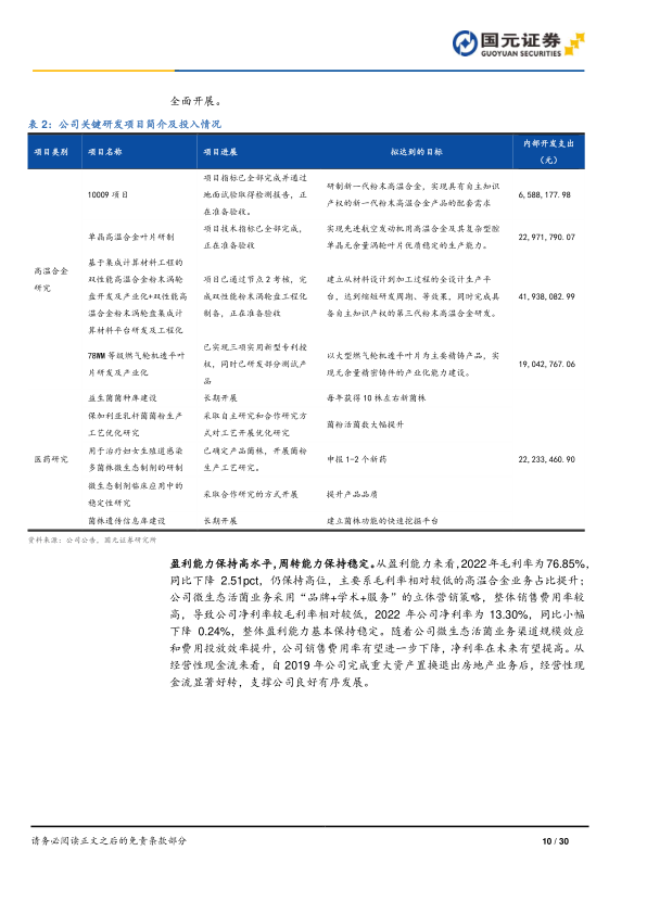 高温合金方面,中南研究院单晶/定向涡轮叶片产能达10000件/年;深汕万泽单晶/等轴晶生产能力达年产万片,在此基础上开展高温合金技改项目,全面提升高温合金产能。微生态活菌产品产能方面,加快推进珠海生物医药研发总部及产业化基地建设,并拟通过定增募资9亿元用于项目建设。公司高温合金及微生态活菌产能有望快速提升,整体业绩有望快速发展。