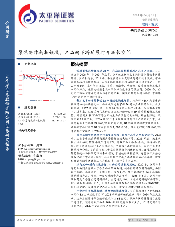 聚焦甾体药物领域,产品向下游延展打开成长空间