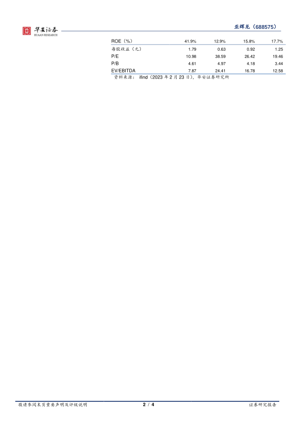 维持亚辉龙“买入”评级。预计公司2023-2025年营业收入分别为20.43/21.27/26.43亿元,同比增长-48.7%/4.1%/24.2%;归母净利润分别为3.58/5.24/7.11亿元,同比增长-64.6%/46.1%/35.8%;对应EPS为0.63/0.92/1.25元,对应PE倍数为39/26/19x。