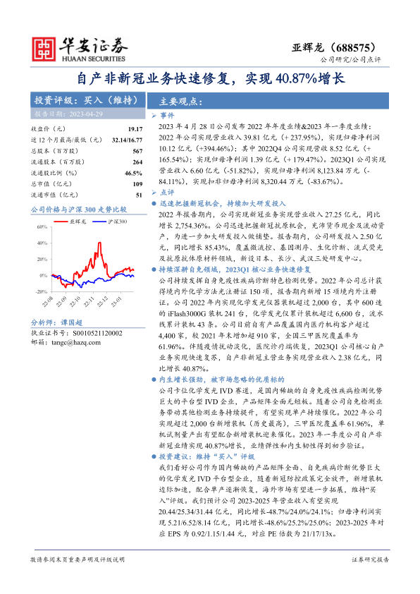 尽管短期内业绩面临挑战,但亚辉龙在自身免疫性疾病诊断领域的优势和持续的研发投入,使其具备长期发展的潜力。因此,华安证券维持对亚辉龙的“买入”评级,并建议投资者关注其未来的发展。