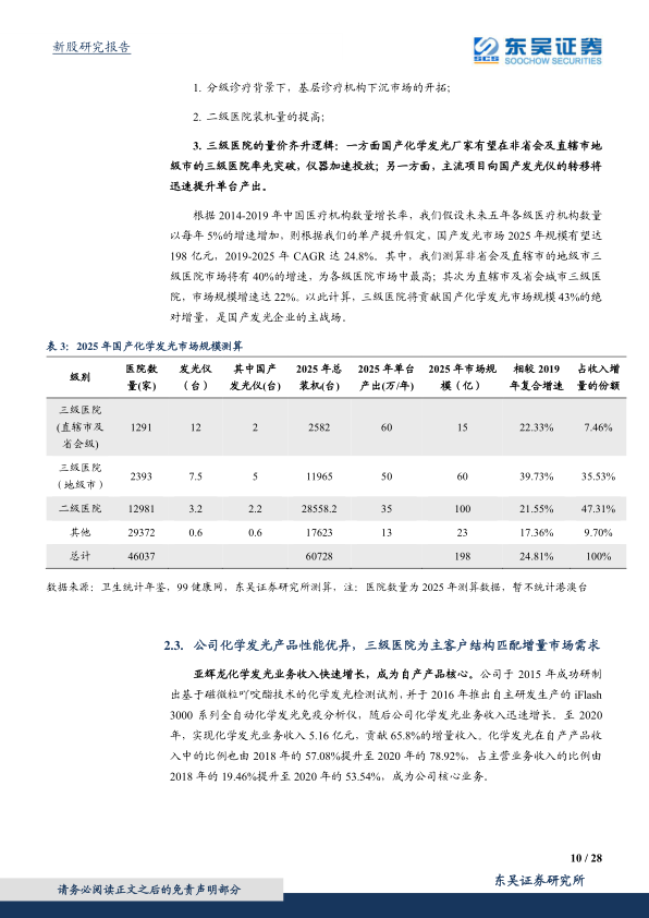 风险提示:化学发光外产品销售萎缩风险、新产品研发不及预期、销售区域过于集中风险、原材料价格波动风险等。