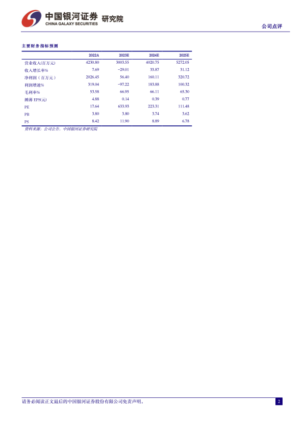 对公司2022A-2025E的主要财务指标进行了预测,包括营业收入、净利润、毛利率、EPS等。