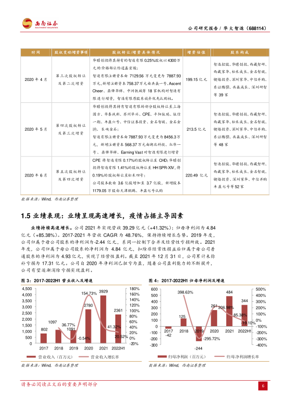 华大智造自2016年4月由华大控股全资子公司MGIHK设立以来,经历了五次股权转让和四次增资变动,并于2020年6月整体变更为股份有限公司。在此过程中,公司的投资队伍不断壮大,估值持续上升,例如在2020年1月的第一次增资中,投后估值达到168.91亿元,并在同年6月的第四次增资中进一步提升至220.49亿元,吸引了中信并购、金石智娱、松禾成长等众多知名机构的投资。