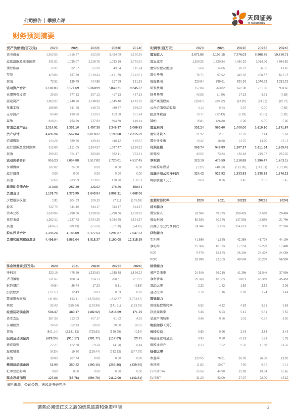 4月29日公司公布2022第一季度报:营业收入14.43亿元,同比增长165.77%;归母净利润3.82亿元,同比增长333.53%;扣非后归母净利润3.81亿元,同比增长406.20%;毛利率48.94%,较去年同期上升8.55pp,利润增长超业绩预告上限。