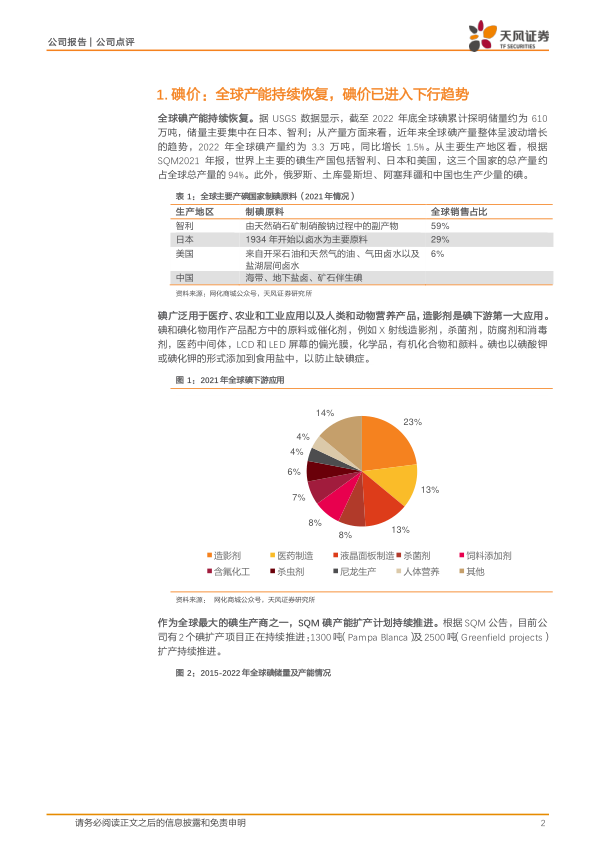 考虑到碘价下降节奏较前预期偏慢,将2024-2026年公司营业收入调整至26.09/32.14/40.67亿元(2024-2025年前值为29.56/35.51亿元),归母净利润调整至1.55/3.22/4.82亿元(2024-2025年前值2.50/4.25亿元),维持“买入”评级。