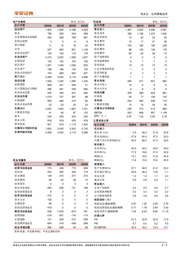 本报告分析了司太立(603520.SH)2021年第三季度的业绩,并维持“推荐”评级。