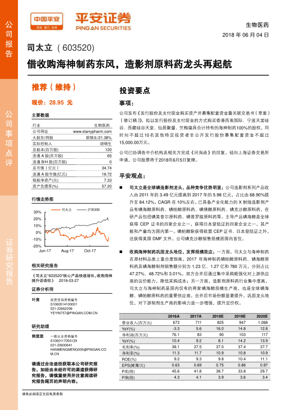 本报告分析了司太立收购海神制药的战略意义,指出此次收购将巩固司太立在碘造影剂原料药市场的龙头地位,实现产品互补和客户共享,并显著改善其财务指标。报告维持对司太立的“推荐”评级,但同时也提示了并购、研发和产品降价等风险。