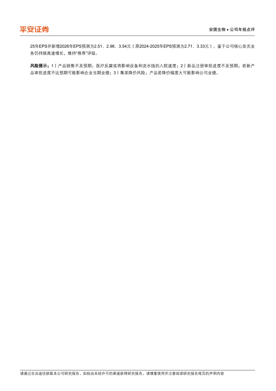 风险提示:1)产品销售不及预期:医疗反腐或将影响设备和流水线的入院速度;2)新品注册审批进度不及预期:若新产品审批进度不达预期可能影响企业当期业绩;3)集采降价风险:产品若降价幅度大可能影响公司业绩。