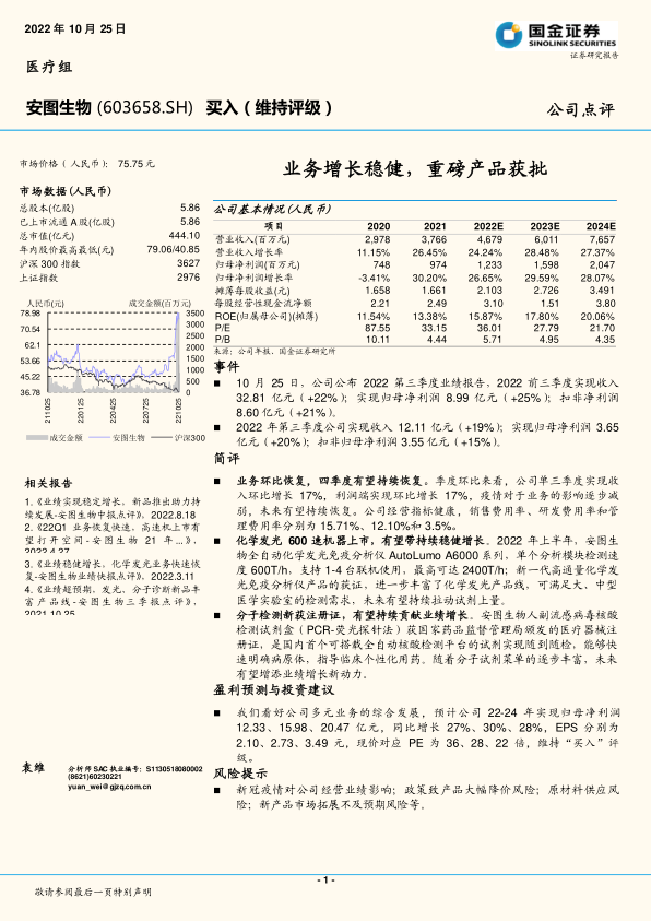安图生物凭借其稳健的业务增长、不断丰富的产品线以及在化学发光和分子检测领域的拓展,展现出良好的发展前景。报告维持“买入”评级,但同时也提示了相关风险,为投资者提供了全面的参考信息。