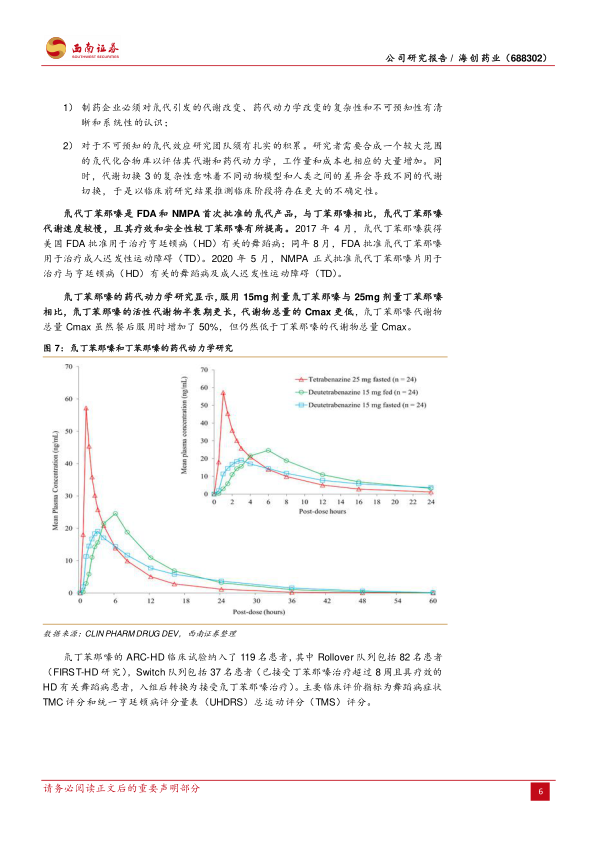 德恩鲁胺后线治疗转移性去势抵抗性前列腺癌(mCRPC)预计2023上半年提交NDA,一线适应症全球多中心Ⅲ期临床入组中。德恩鲁胺是恩扎卢胺的氘代药物,后线治疗mCRPC适应症预计2023上半年提交NDA,预期于2024年上半年获批上市。一线全球多中心三期临床2022年初启动,正在入组中。横向对比恩扎卢胺试验数据,德恩鲁胺有效性更高,80mg德恩鲁胺与160mg恩扎卢胺疗效相当,病人依从性更好;安全性更好,已有临床受试者中尚未有癫痫发生;且德恩鲁胺化合物专利将于2032年到期,有效期更长。测算其国内后线和一线适应症销售峰值分别为8.8亿元、20.2亿元,DCF估值为59.9亿元。