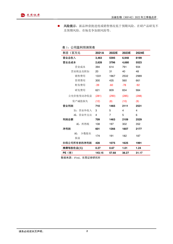 风险提示:新品种获批进度或销售情况低于预期风险、在研产品研发不及预期风险、市场竞争加剧风险等。