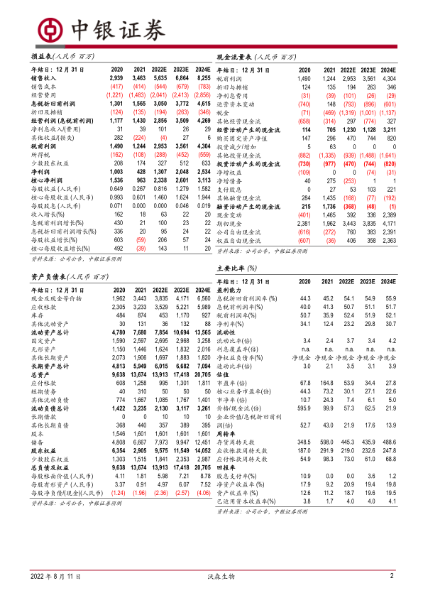 我们维持此前的盈利预测,在不考虑新冠疫苗的情况下,预测公司2022-2024年将分别实现净利润13.07亿元、20.48亿元、25.34亿元,维持增持评级。评级面临的主要风险