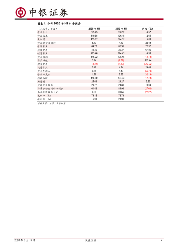 本报告分析了沃森生物2020年中报,认为公司Q2业绩恢复增长,13价肺炎疫苗放量可期,重磅产品研发顺利推进,未来发展潜力巨大。维持对公司的增持评级,但同时也提示了相关风险,包括疫苗放量速度、政策风险、研发进度以及竞争对手的潜在影响。