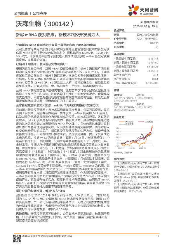 本报告主要围绕沃森生物新冠mRNA疫苗的研发进展及其市场潜力展开分析,并维持对该公司的“买入”评级。