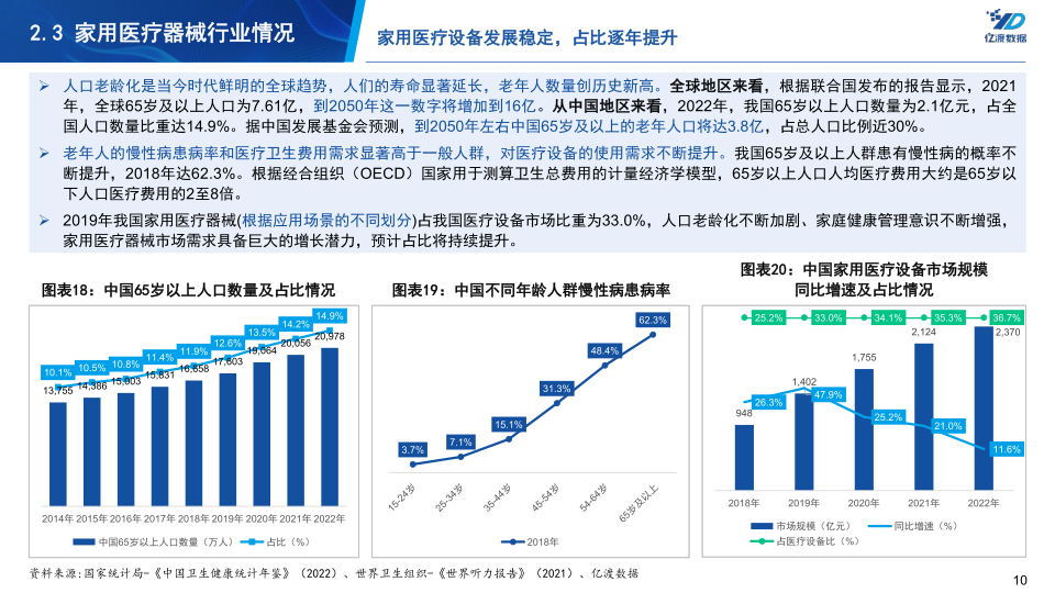 家用医疗设备发展稳定,占比逐年提升。人口老龄化和家庭健康管理意识增强推动市场需求增长。